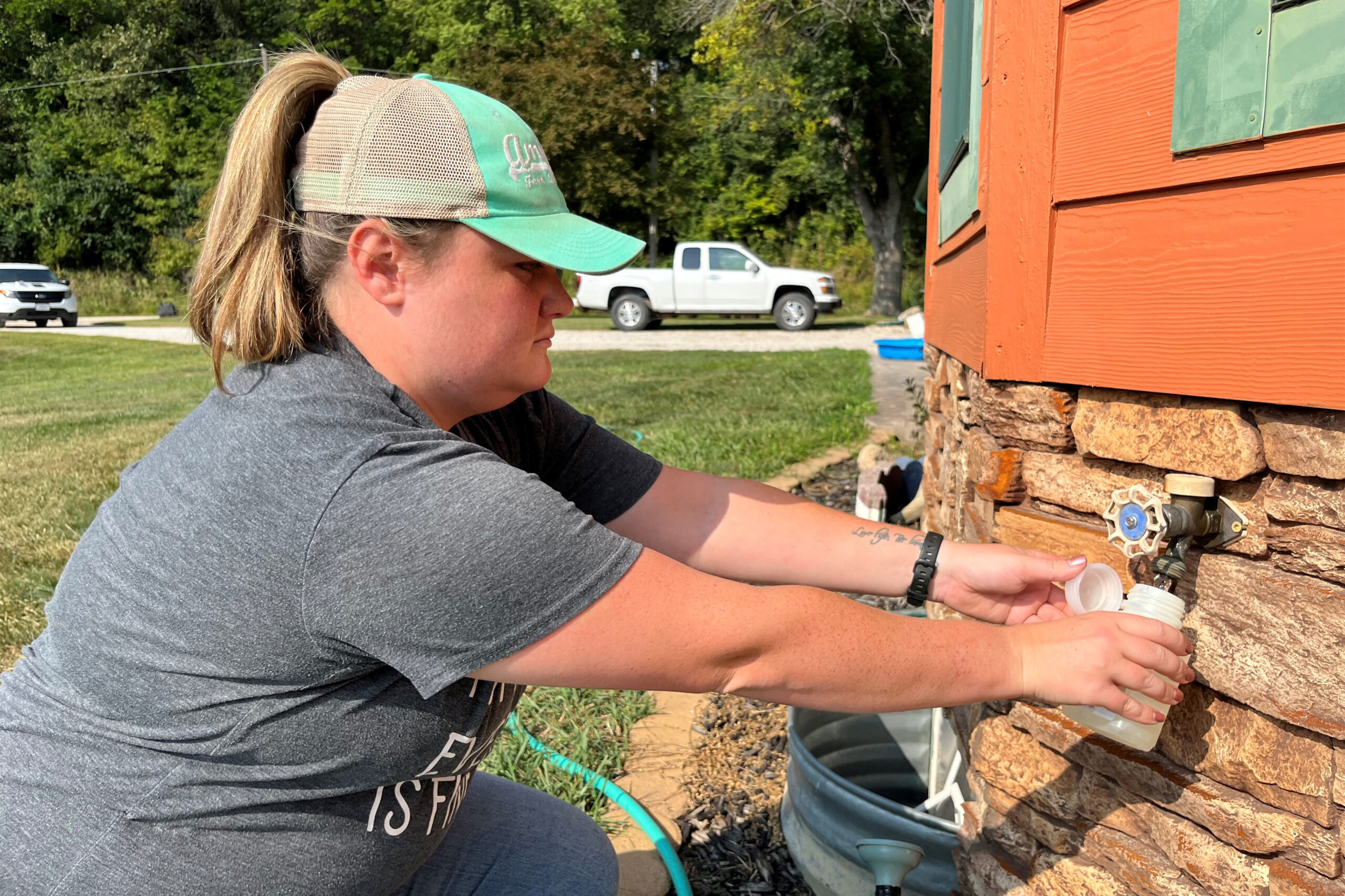 She collects the water in small plastic bottles, which she mails to a lab. She enters information about each well into a state database. If the tests turn up contaminants, she advises homeowners of their options.