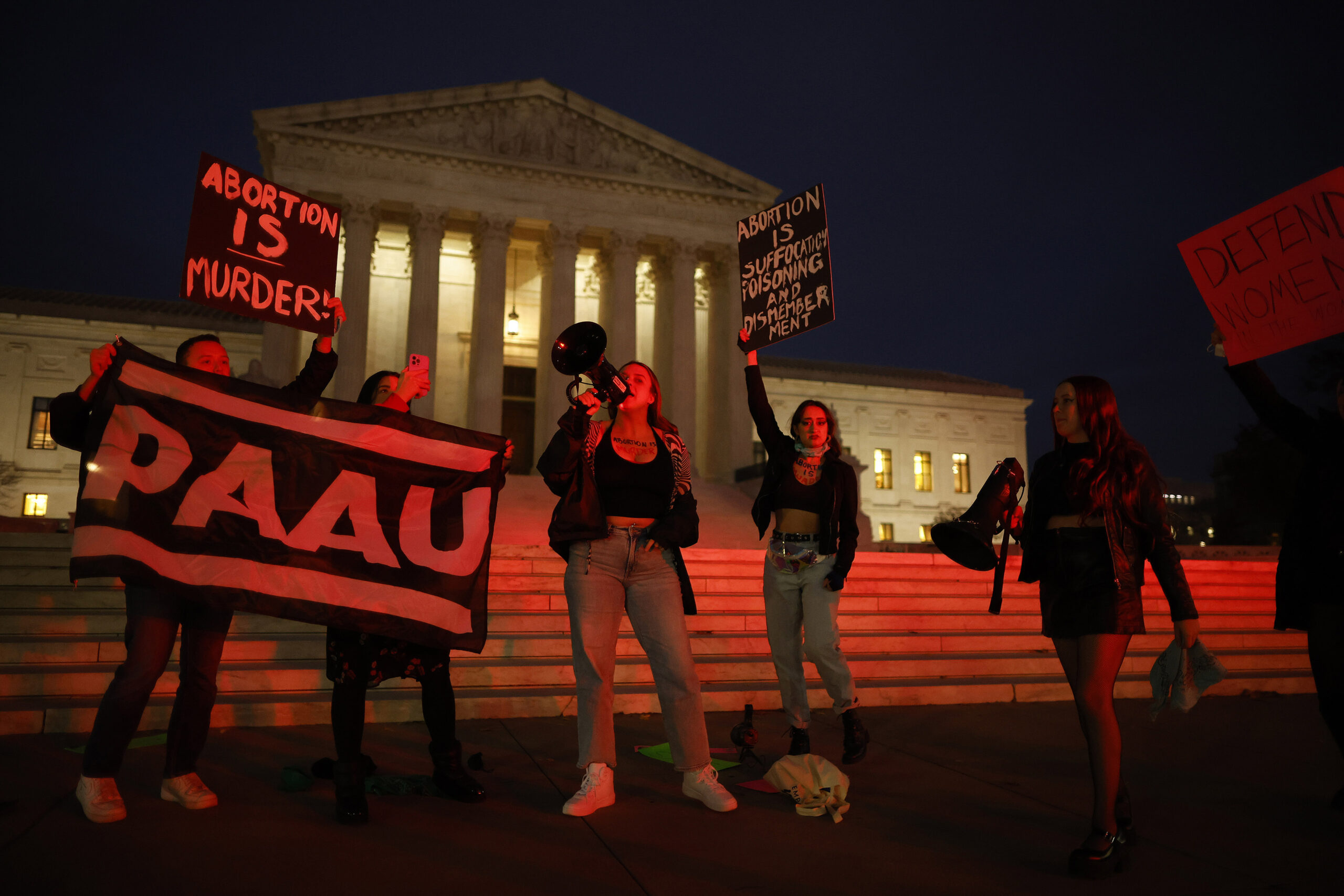 The messaging was likely a shock in Washington. The graffiti reflects part of a surprising segment of the ideological spectrum: anti-abortion using the language of the radical left.